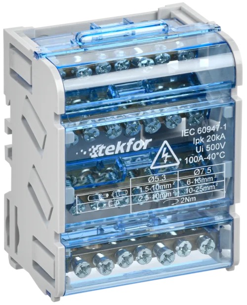 Токоведущие шины изготовлены из медно-цинкового сплава марки ЛС59 по ГОСТ 15527-2004.|Материал корпуса: пластик, не поддерживающий горение.|Возможность установки на DIN-рейку и на