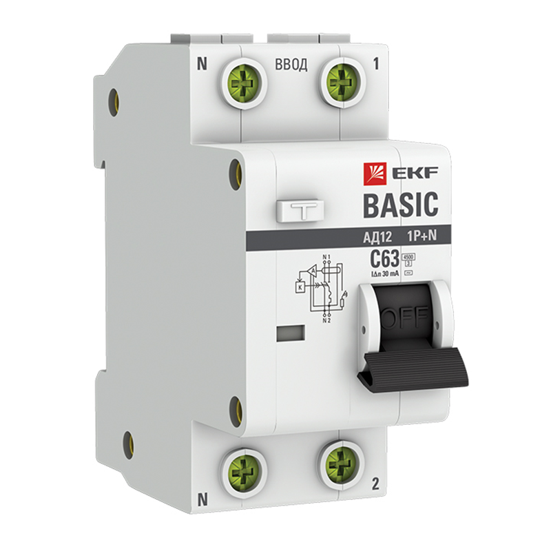 Автоматический выключатель дифференциального тока 1P+N 63А 30мА тип АС х-ка C эл. 4,5кА АД-12 Basic