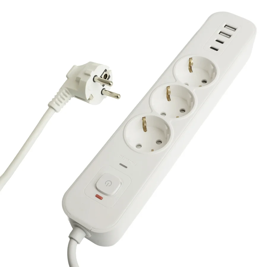Сетевой фильтр 3-местный с/з 3x1мм2, 5 м, 250В, 16А, 2 USB-A+2 Type-C 3, серия Nova, белый 5 STEKKER