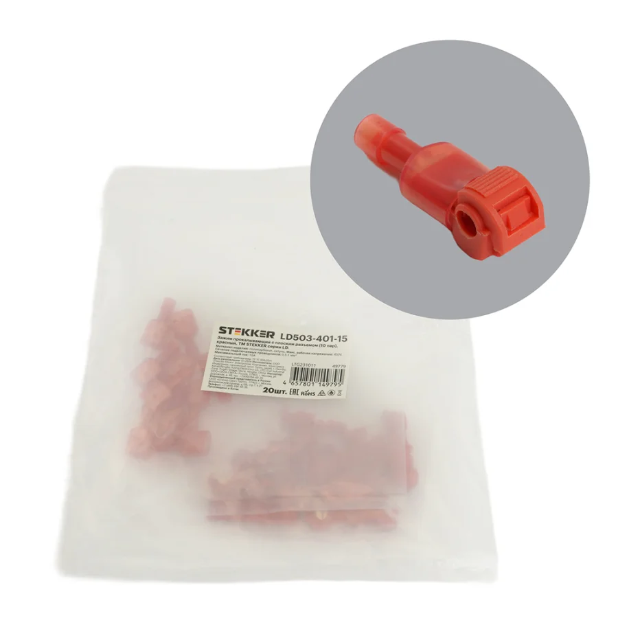 Зажим прокалывающий ответвительный с плоским разъемом (10 пар) 0,5-1мм2, красный (DIY упаковка 20шт)
