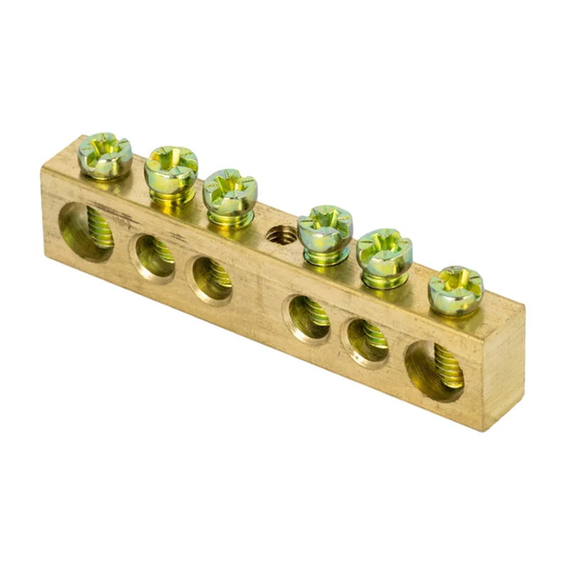 Шина PEN "ноль-земля" (8х12мм) 6 отверстий латунь крепеж по центру PROxima EKF sn0-125-6-c