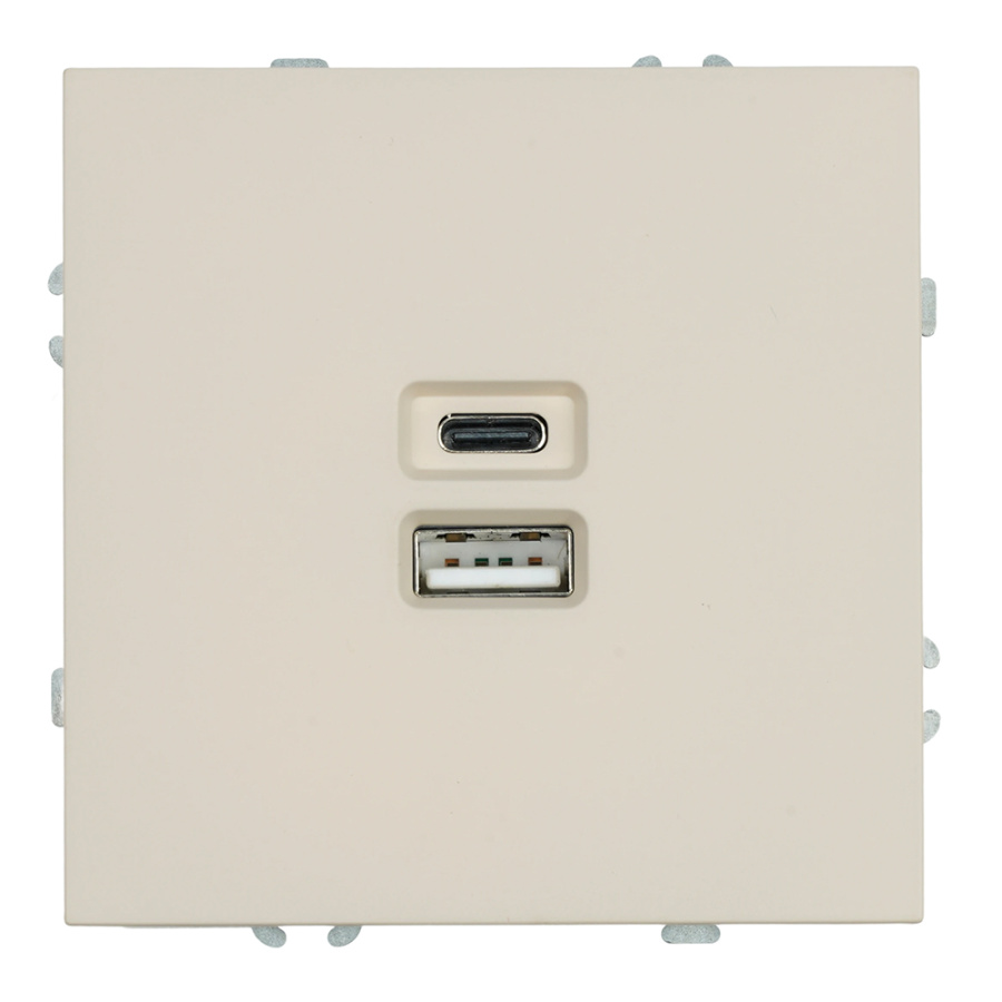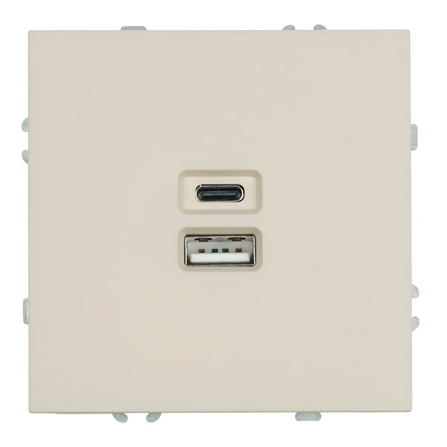 Розетка 2-местная USB + Type C (механизм), , 250В, 20W, серия Эмили, RST10-5115-08, кашемир, STEKKER