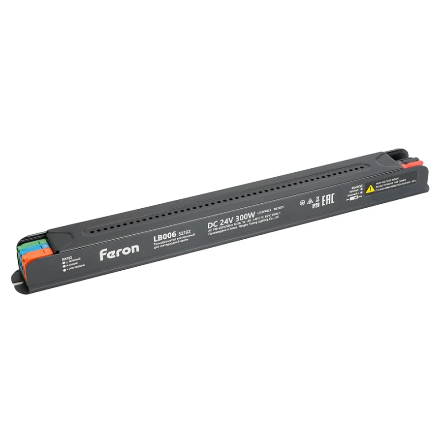 Трансформатор для светодиодной ленты с диммированием 300W 24V IP20 , клипсы, LB006 Feron 52132