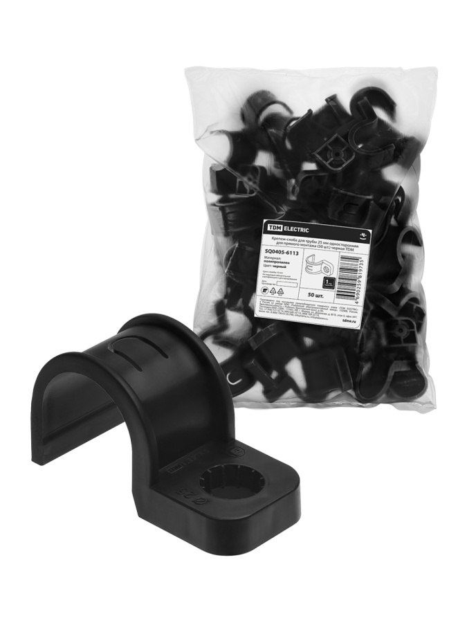 Крепеж-скоба для трубы 25 мм односторонняя для прямого монтажа (50 шт.) черная TDM SQ04 TDM Electric