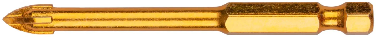 Сверло по кафелю, 4 режущие кромки, титановое покрытие, U-хвостовик под биту 6х74 мм FIT 35476