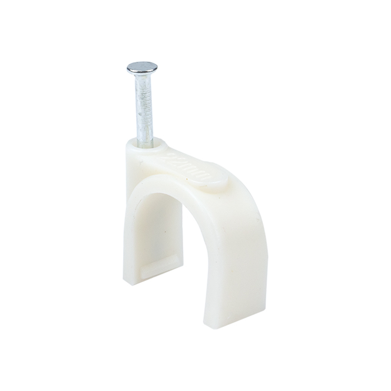 Материал: полипропилен, самозатухающий, без галогенов|Гвоздь: закаленная оцинкованная сталь, не подвержен коррозии|Поставляется в комплекте с уже вставленным гвоздем|На каждой скоб