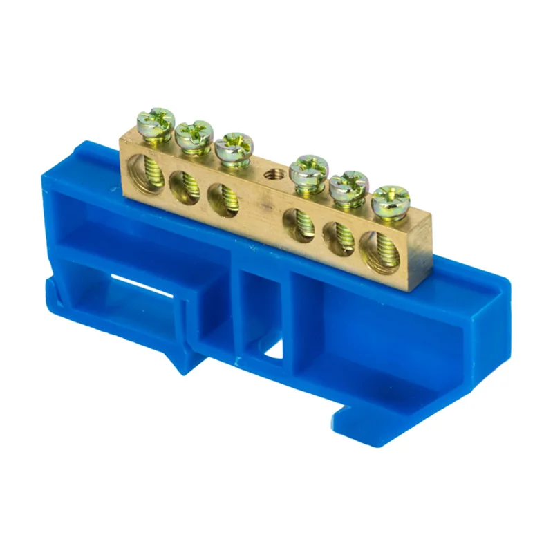 Шина "0" N (8х12мм) 6 отверстий латунь синий изолятор на DIN-рейку PROxima EKF sn0-125-6-d