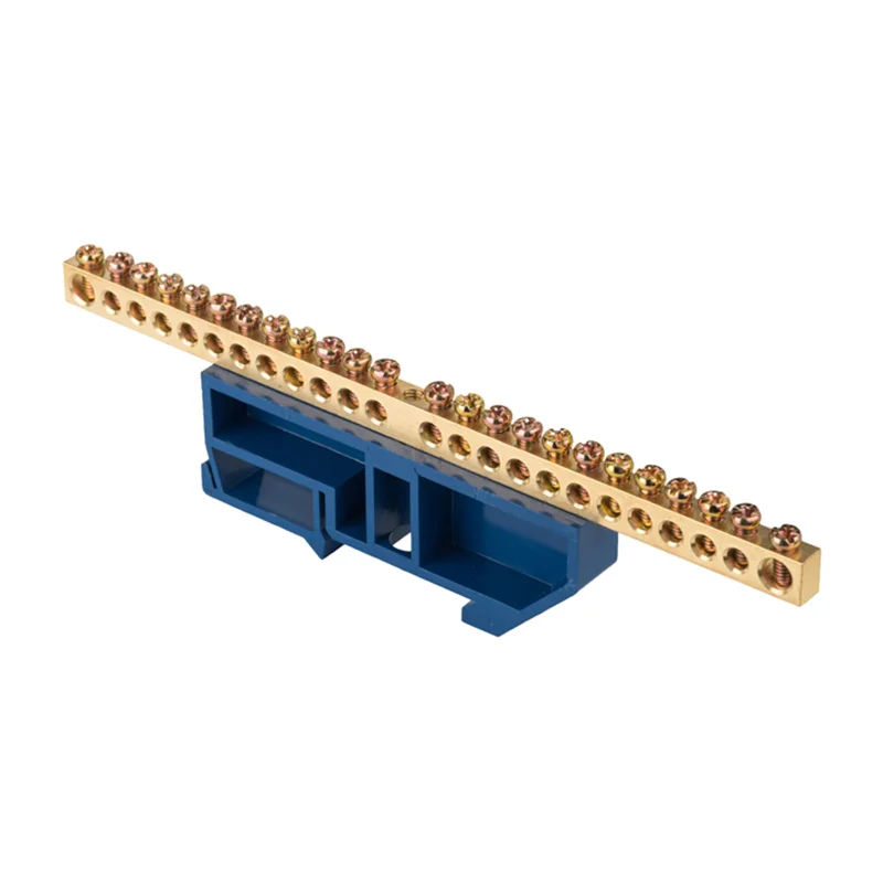 Шина "0" N (6х9мм) 24 отверстия латунь синий изолятор на DIN-рейку PROxima EKF sn0-63-24-d