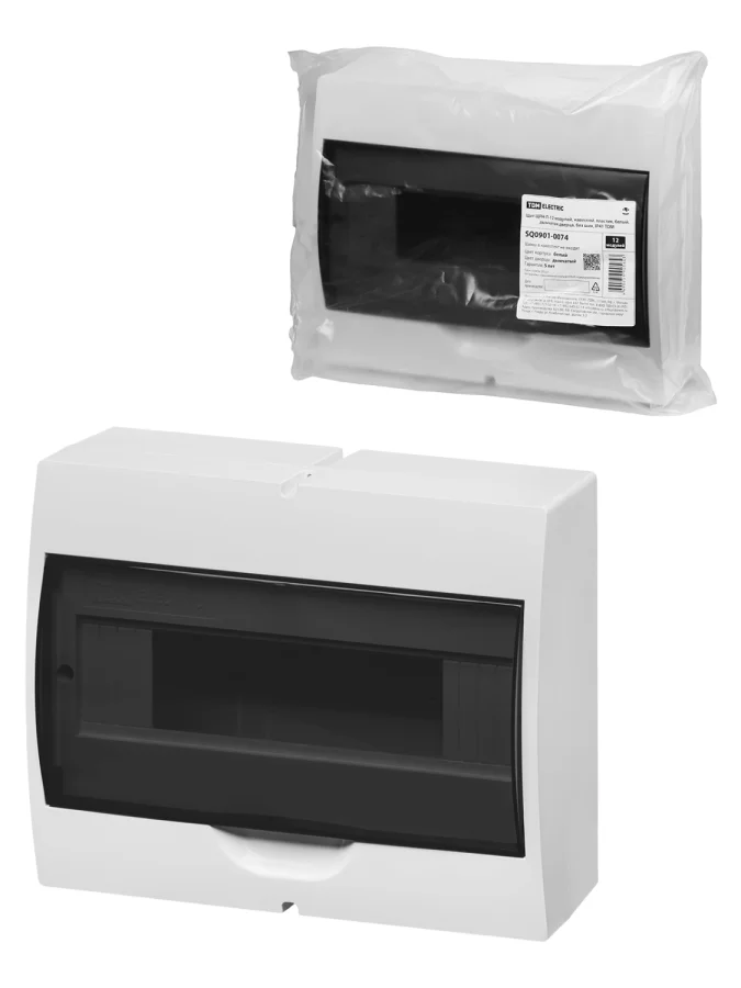 Щит ЩРН-П-12 модулей, навесной, пластик, белый, дымчатая дверца, без шин, IP41 TDM SQ09 TDM Electric