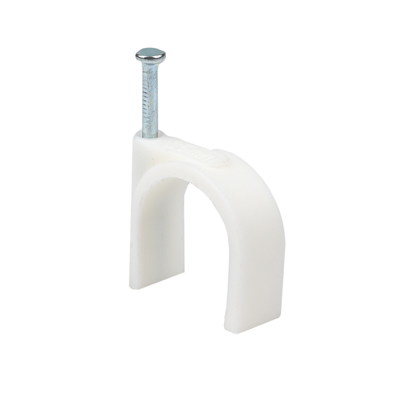 Материал: полипропилен, самозатухающий, без галогенов|Гвоздь: закаленная оцинкованная сталь, не подвержен коррозии|Поставляется в комплекте с уже вставленным гвоздем|На каждой скоб