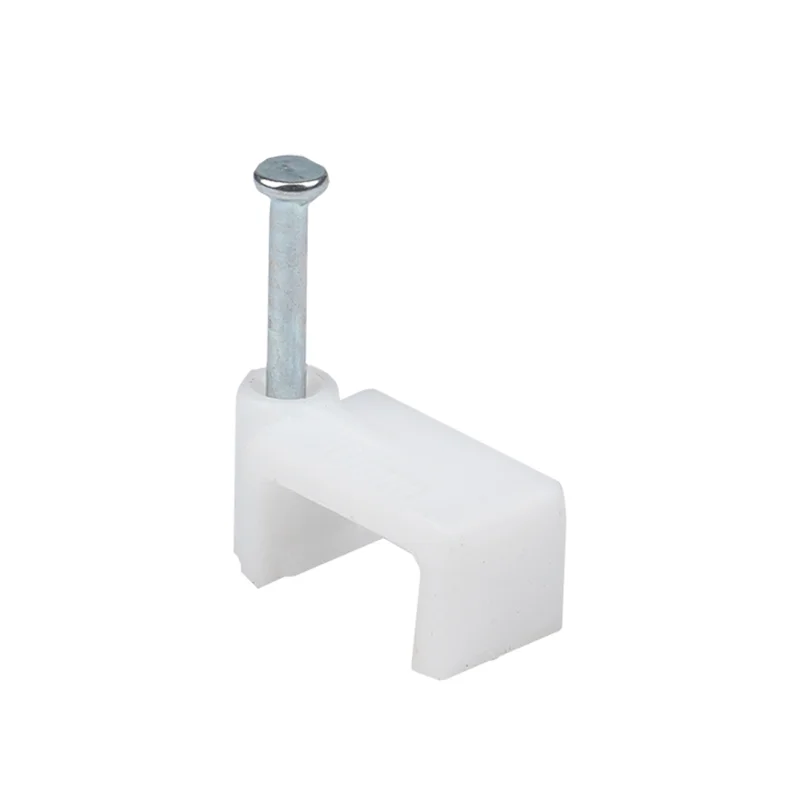 Материал: полипропилен, самозатухающий, без галогенов|Гвоздь: закаленная оцинкованная сталь, не подвержен коррозии|Поставляется в комплекте с уже вставленным гвоздем|На каждой скоб