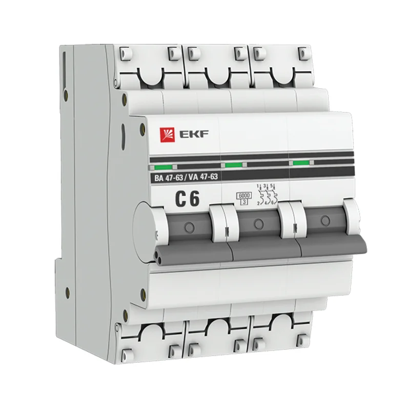 Автоматический выключатель 3P 6А (C) 6кА ВА 47-63 PROxima EKF mcb4763-6-3-06C-pro