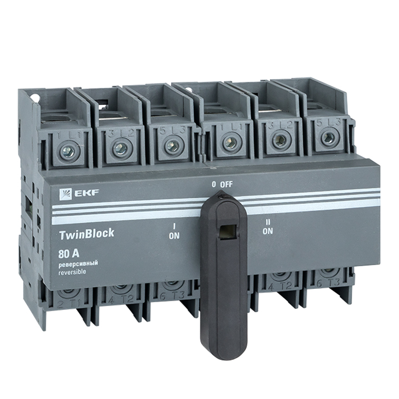 Рубильник 80A 3P реверсивный c рукояткой для прямой установки TwinBlock EKF tb-s-80-3p-rev