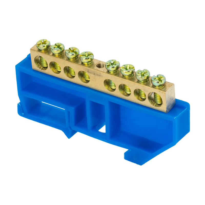 Шина "0" N (8х12мм) 8 отверстий латунь синий изолятор на DIN-рейку PROxima EKF sn0-125-8-d