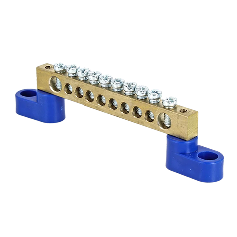 Шина "0" N (6х9мм) 10 отверстий латунь 2 синих угловых изолятора PROxima EKF sn0-2-63-10