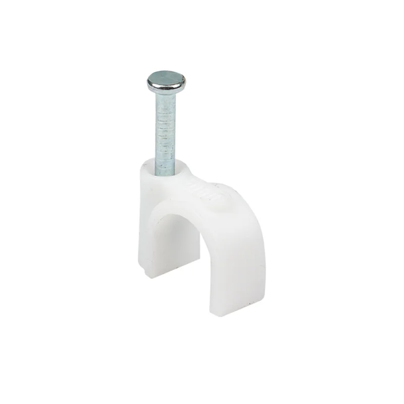 Материал: полипропилен, самозатухающий, без галогенов|Гвоздь: закаленная оцинкованная сталь, не подвержен коррозии|Поставляется в комплекте с уже вставленным гвоздем|На каждой скоб
