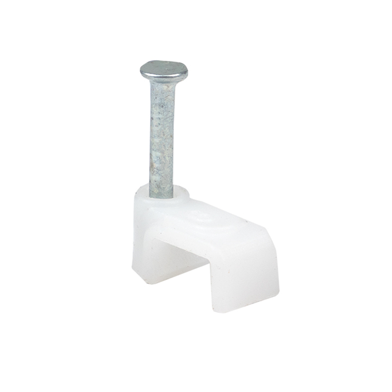 Материал: полипропилен, самозатухающий, без галогенов|Гвоздь: закаленная оцинкованная сталь, не подвержен коррозии|Поставляется в комплекте с уже вставленным гвоздем|На каждой скоб