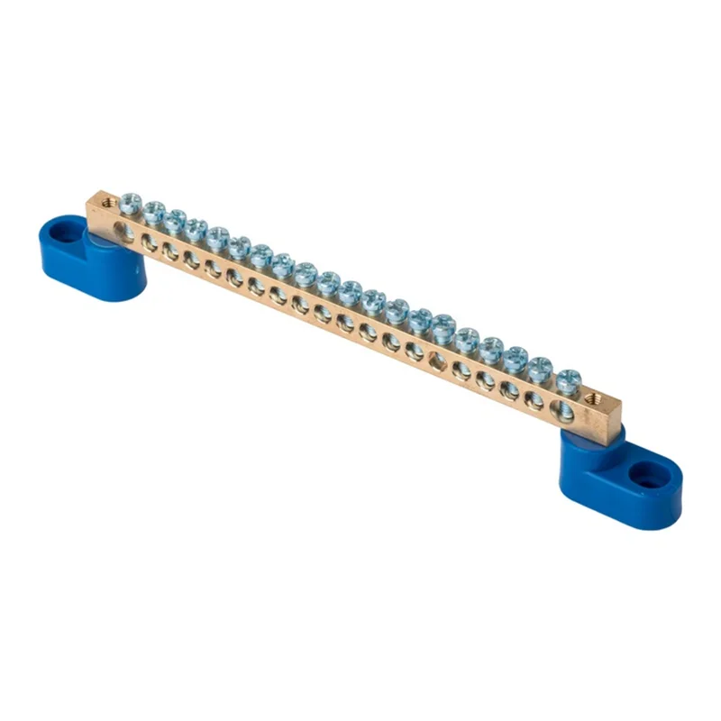 Шина "0" N (6x9мм) 20 отв. латунь 2 синих угловых изолятора розн. стикер EKF sn0-2-63-20-r