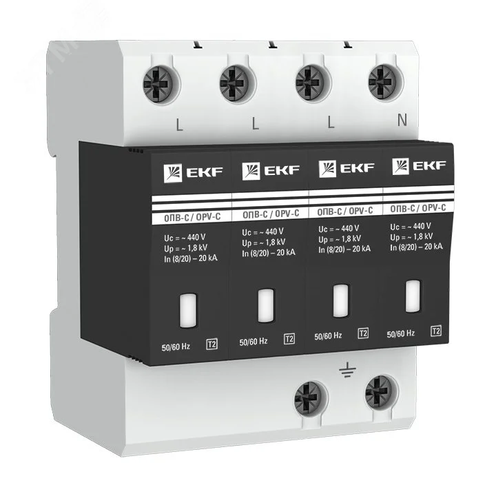 Ограничитель импульсных напряжений ОПВ-C/4P In 20кА 440В с сигн. EKF opv-c4