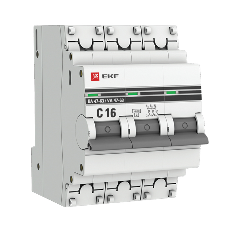 Автоматический выключатель 3P 16А (C) 4,5kA ВА 47-63 PROxima EKF mcb4763-3-16C-pro