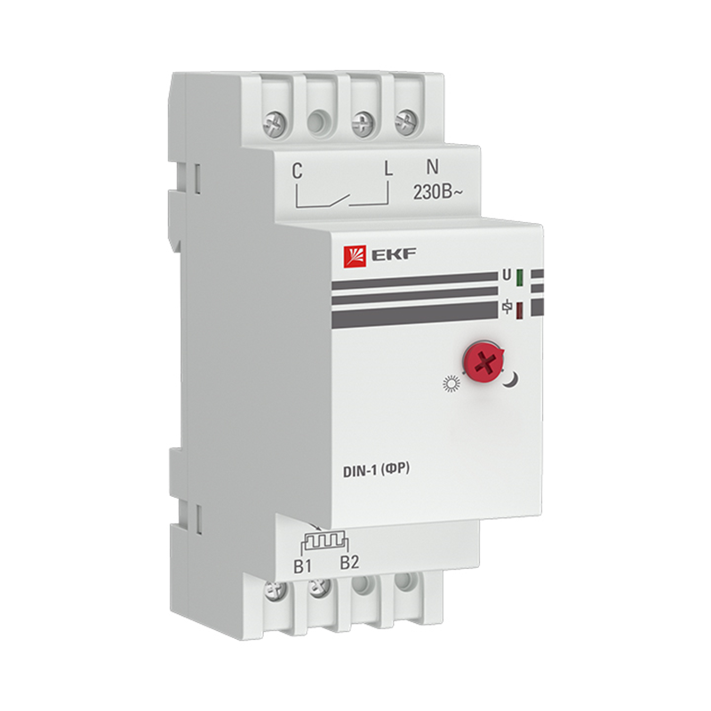 Фотореле на DIN-рейку с выносным датчиком (ФР) 2-100Лк 25А 3000Вт PROxima EKF fr-din-1-25