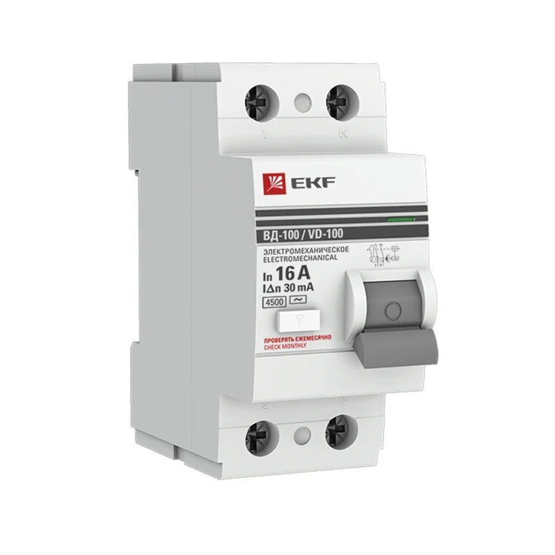 Устройство защитного отключения УЗО ВД-100 2P 16А/ 30мА (электромеханическое) PROxima elcb-2-16- EKF