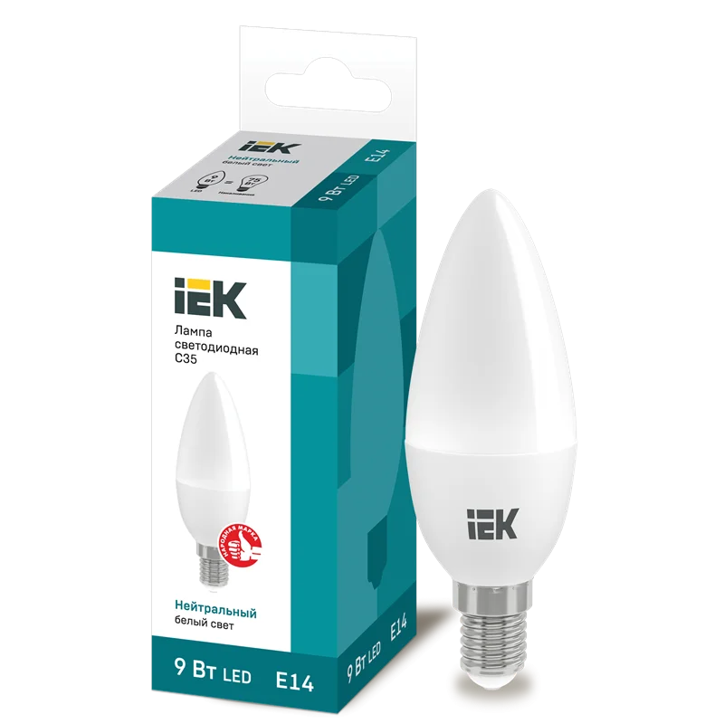 Лампа LED C35 свеча 9Вт 230В 4000К E14 IEK LLE-C35-9-230-40-E14