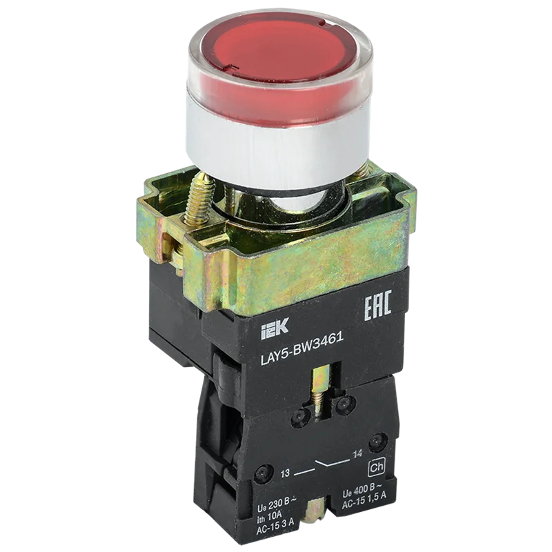 Кнопка управления LAY5-BW3461 с подсветкой красный 1з IEK BBT50-BW-K04