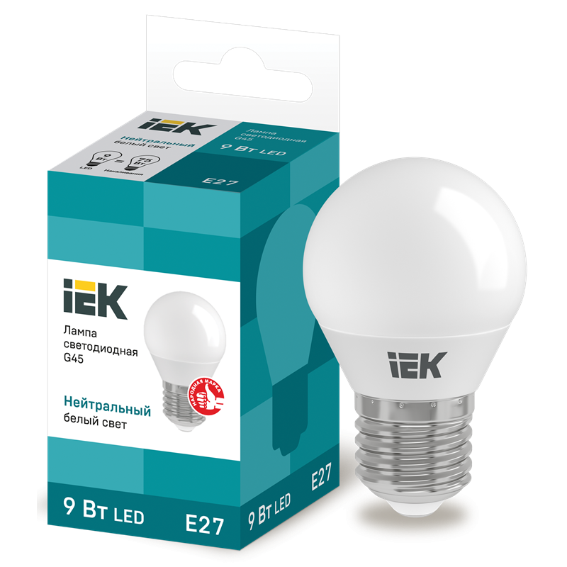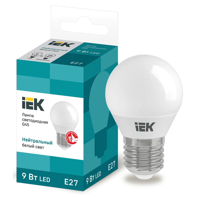 Лампа LED G45 шар 9Вт 230В 4000К E27 IEK LLE-G45-9-230-40-E27