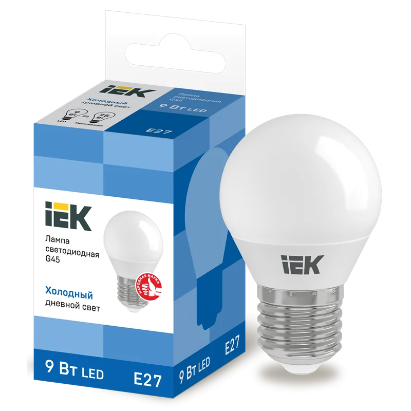 Лампа LED G45 шар 9Вт 230В 6500К E27 IEK LLE-G45-9-230-65-E27