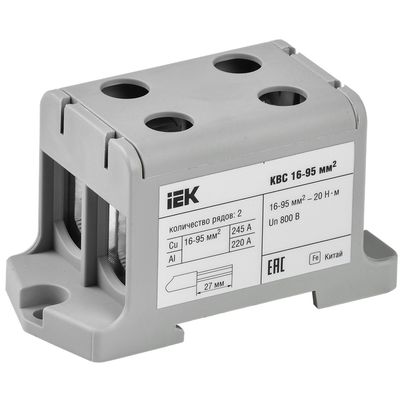 Клемма вводная силовая КВС 16-95 кв.мм. 2-рядная серая IEK YZN13-095-K03
