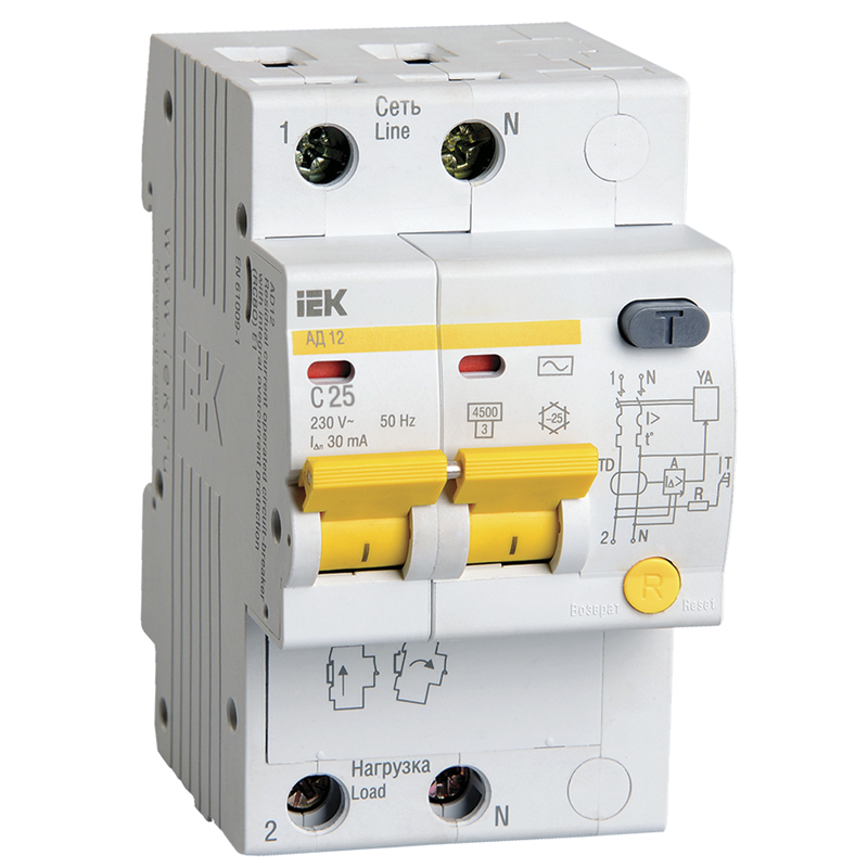 Диф. автомат АД12 2Р 25А 30мА IEK MAD10-2-025-C-030