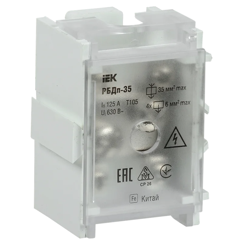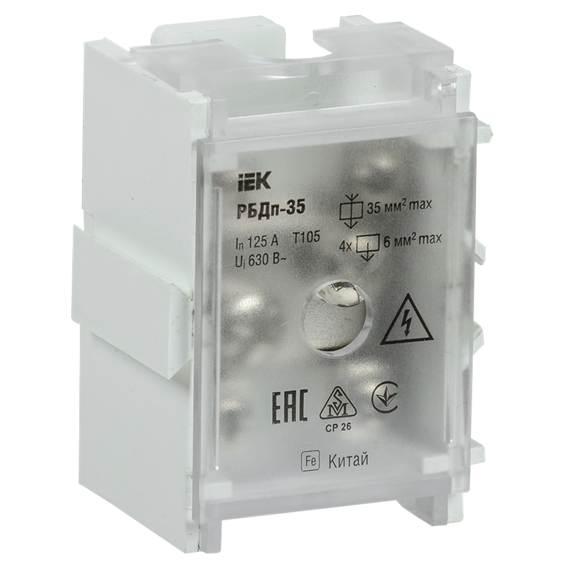 Блок распред. проходн. РБДп-35 125/50А DIN 1х35-4х6мм2 IEK YRB30-1-125