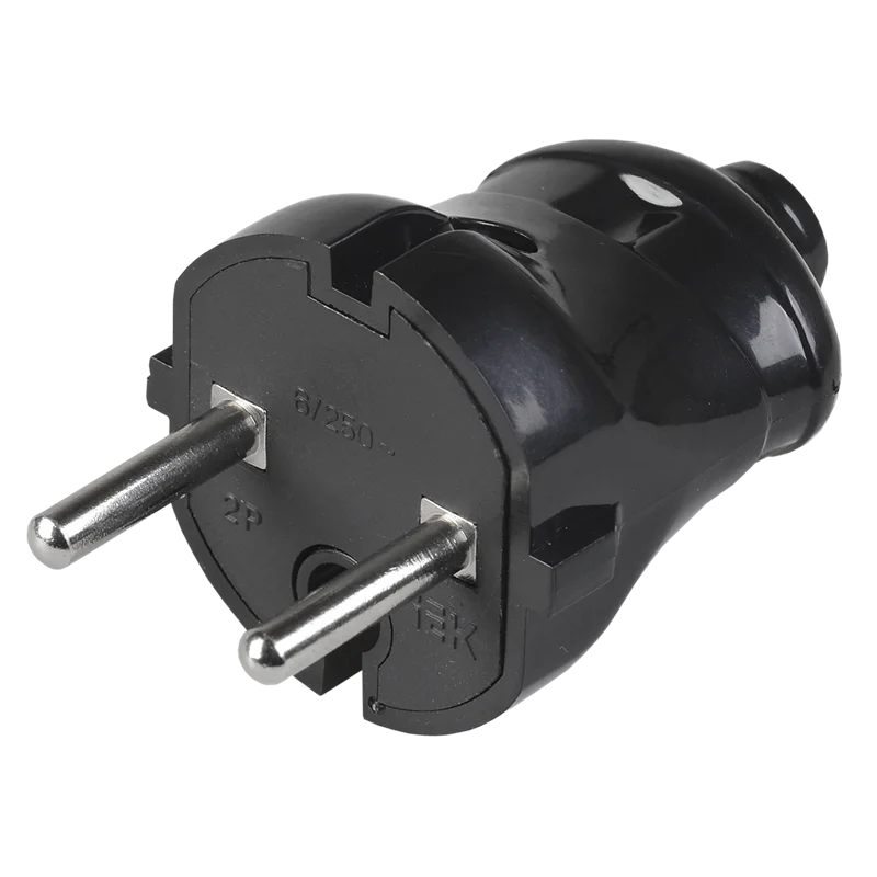 Вилка разборная прямая ВПп20-02-Ст без заземляющего контакта 6А черная IEK EVP20-06-01-K02