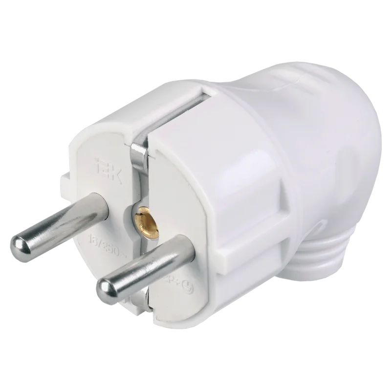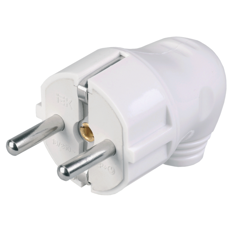 Вилка разборная угловая ВПу11-01-Ст с заземляющим контактом 16А белая IEK EVP11-16-01-K01