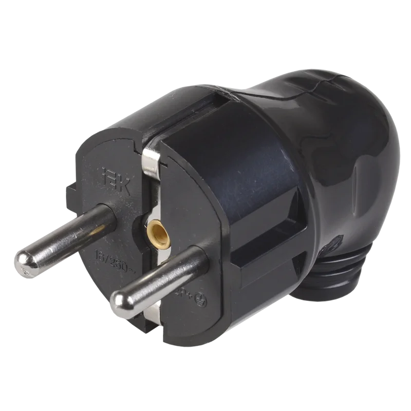 Вилка разборная угловая ВПу11-02-Ст с заземляющим контактом 16А черная IEK EVP11-16-01-K02
