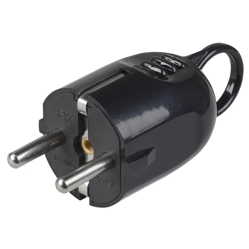 Вилка разборная угловая ВПу12-02-Ст с заземляющим контактом с кольцом 16А черная IEK EVP12-16-01-K02