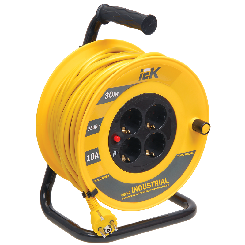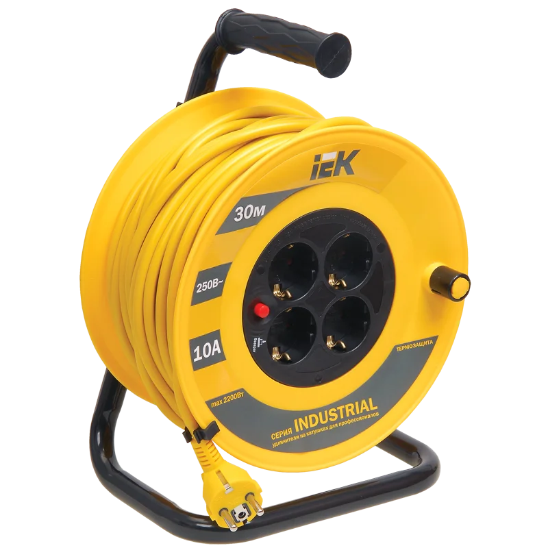 Катушка УК30 4 места 2P+PE/30м 3х1,0мм2 "Industrial" IEK WKP14-10-04-30