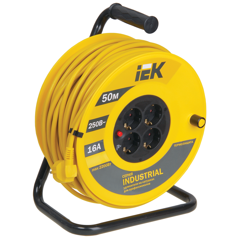 Катушка УК50 4 места 2P+PE/50м 3х1,5мм2 "Industrial" IEK WKP15-16-04-50