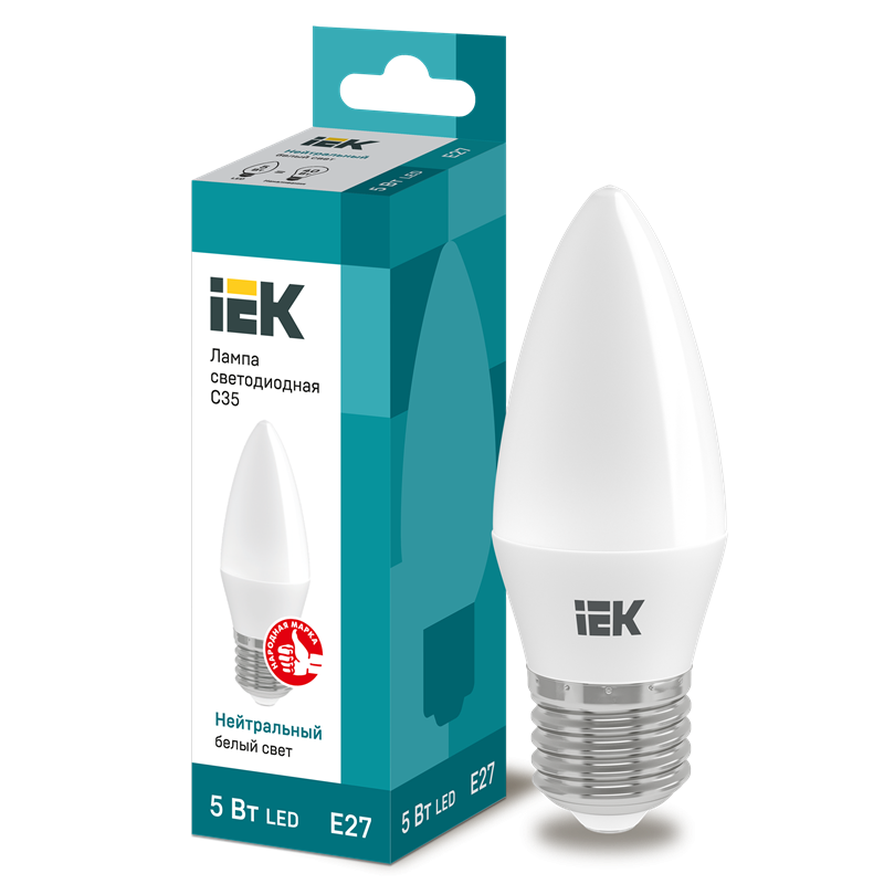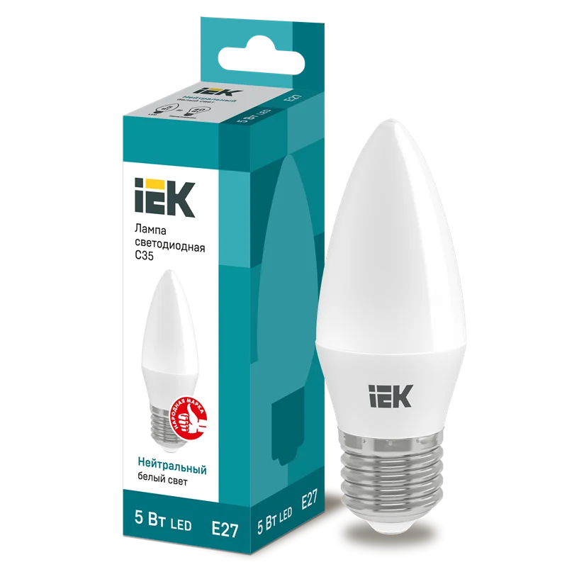 Лампа LED C35 свеча 5Вт 230В 4000К E27 IEK LLE-C35-5-230-40-E27
