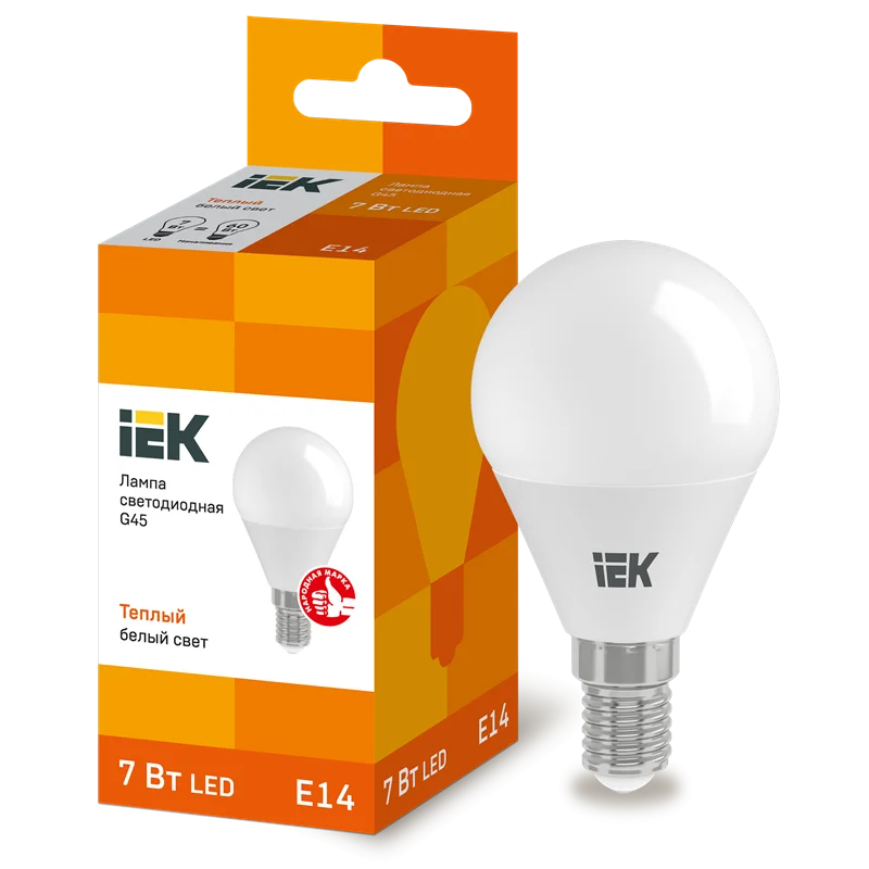 Лампа LED G45 шар 7Вт 230В 3000К E14 IEK LLE-G45-7-230-30-E14