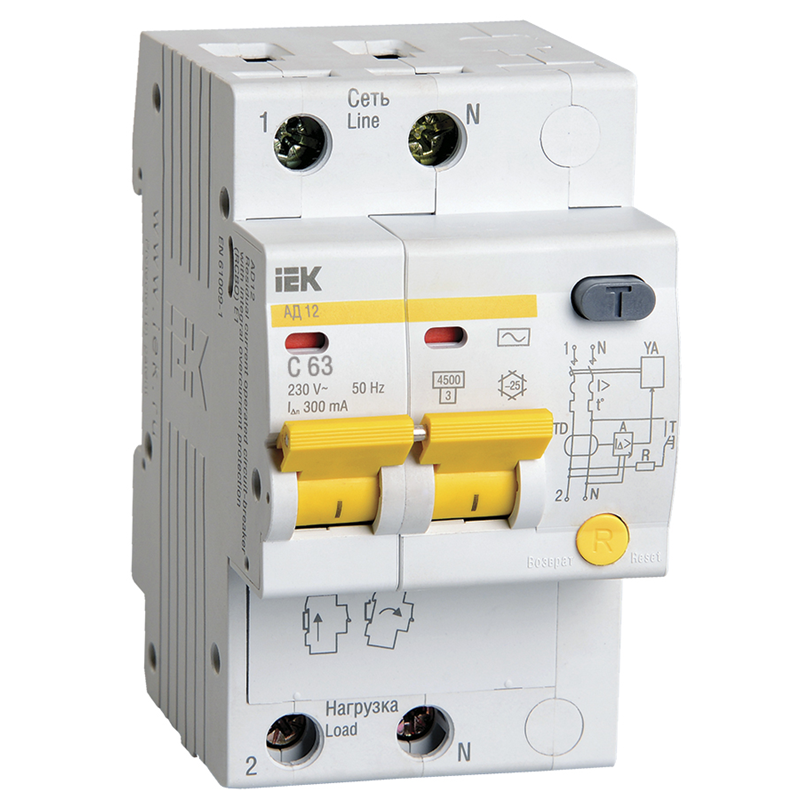 Диф. автомат АД12 2Р 63А 300мА IEK MAD10-2-063-C-300