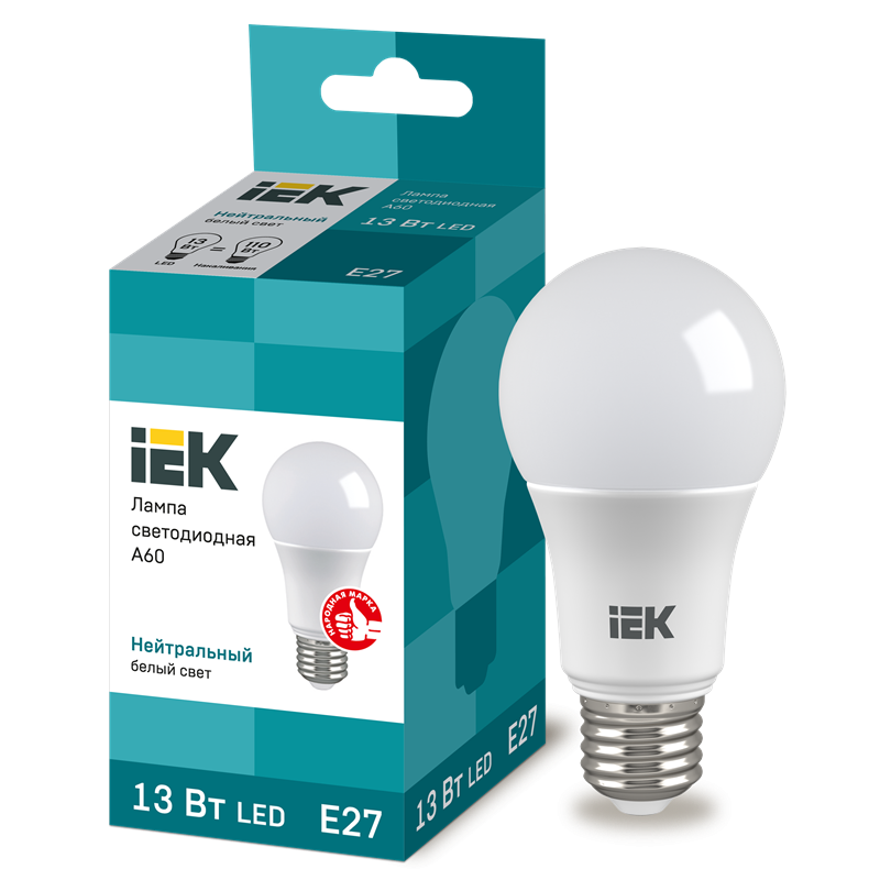 Лампа LED A60 груша 13Вт 230В 4000К E27 IEK LLE-A60-13-230-40-E27