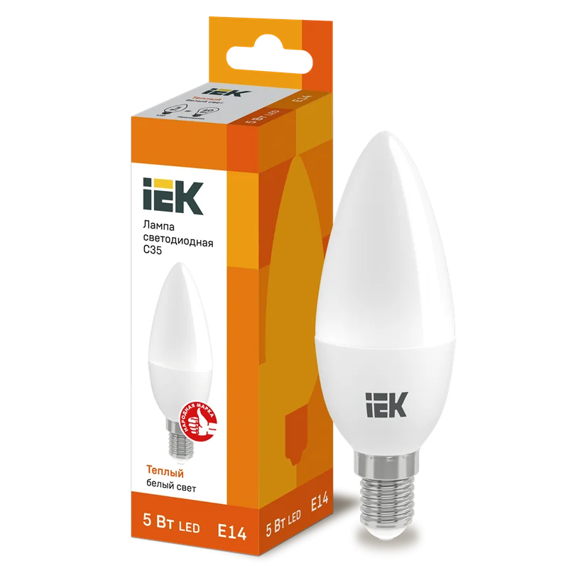 Лампа LED C35 свеча 5Вт 230В 3000К E14 IEK LLE-C35-5-230-30-E14