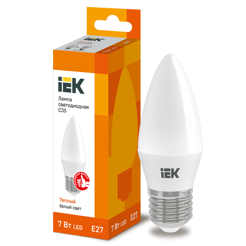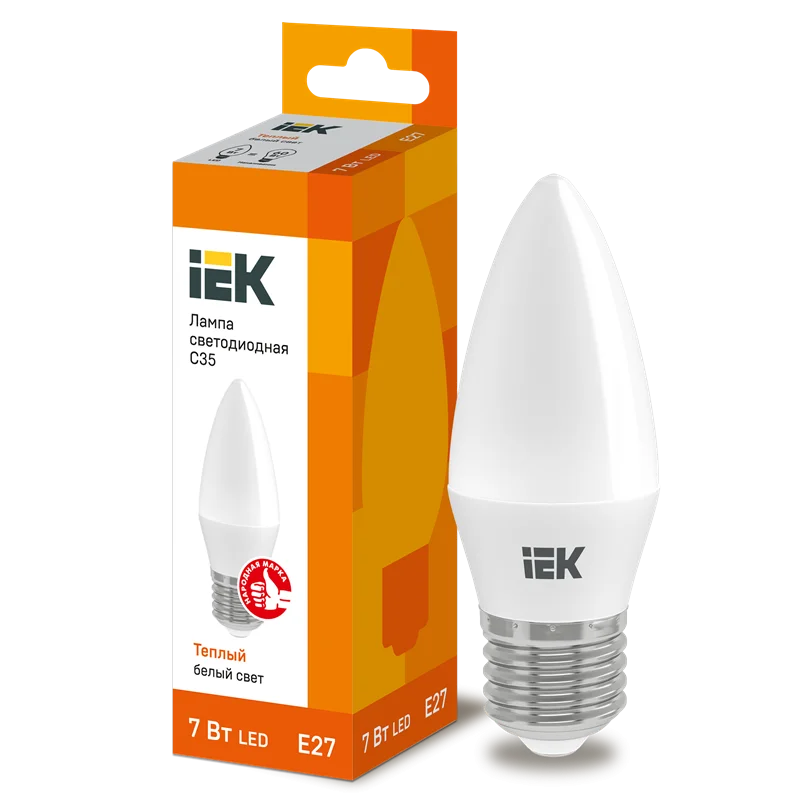 Лампа LED C35 свеча 7Вт 230В 3000К E27 IEK LLE-C35-7-230-30-E27