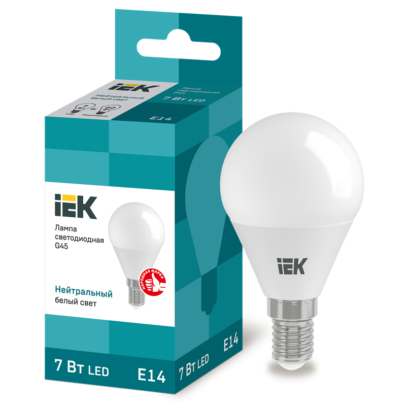 Лампа LED G45 шар 7Вт 230В 4000К E14 IEK LLE-G45-7-230-40-E14