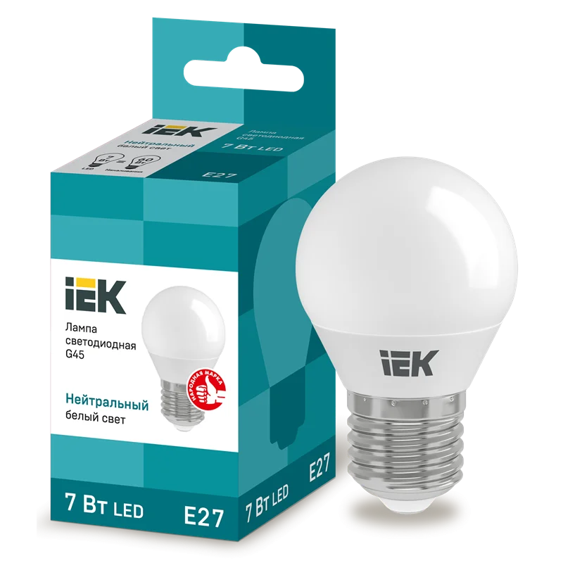 Лампа LED G45 шар 7Вт 230В 4000К E27 IEK LLE-G45-7-230-40-E27