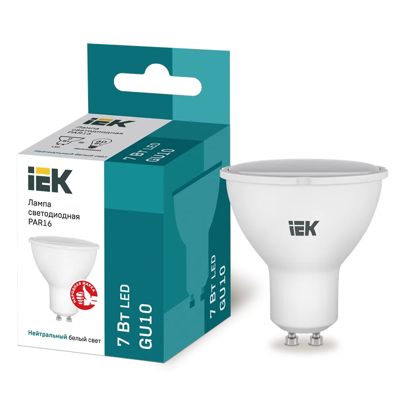 Лампа LED PAR16 софит 7Вт 230В 4000К GU10 IEK LLE-PAR16-7-230-40-GU10