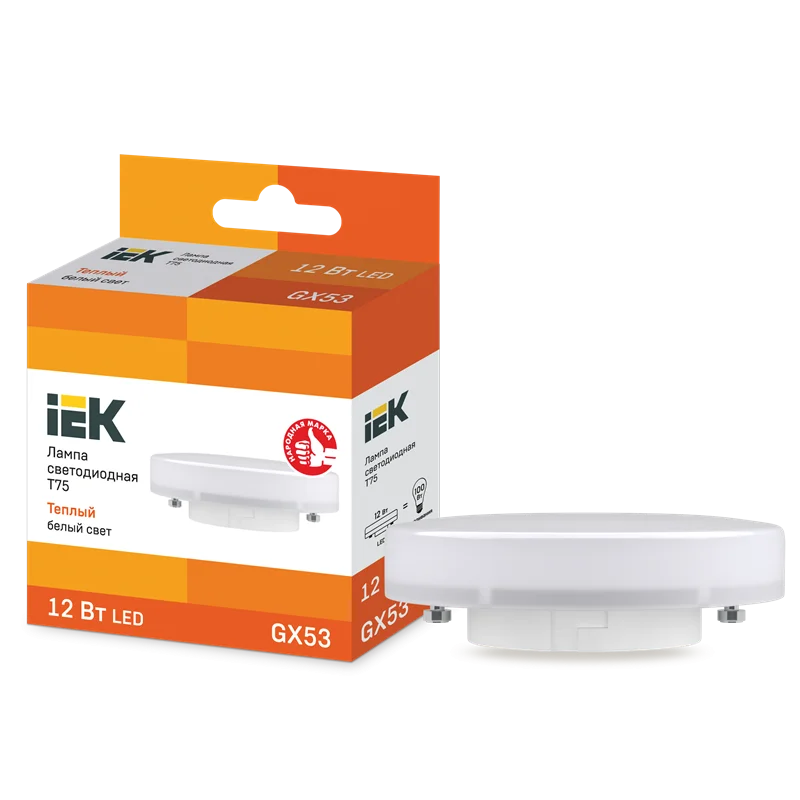 Лампа LED T75 таблетка 12Вт 230В 3000К GX53 IEK LLE-T80-12-230-30-GX53