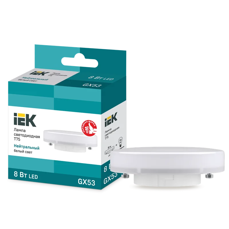 Лампа LED T75 таблетка 8Вт 230В 4000К GX53 IEK LLE-T80-8-230-40-GX53